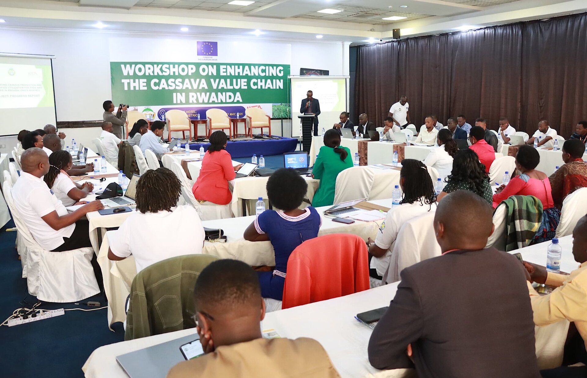 Ni ibiganiro nyunguranabitekerezo byateguwe na Sendika INGABO, byitabirwa n’abahinzi b’imyumbati, Abayobozi mu nzego zitandukanye n’abafatanyabikorwa mu buhinzi hagamijwe kurebera hamwe uko hongerwa uruhererekane nyongeragaciro rw’igihingwa cy’imyumbati mu Rwanda.