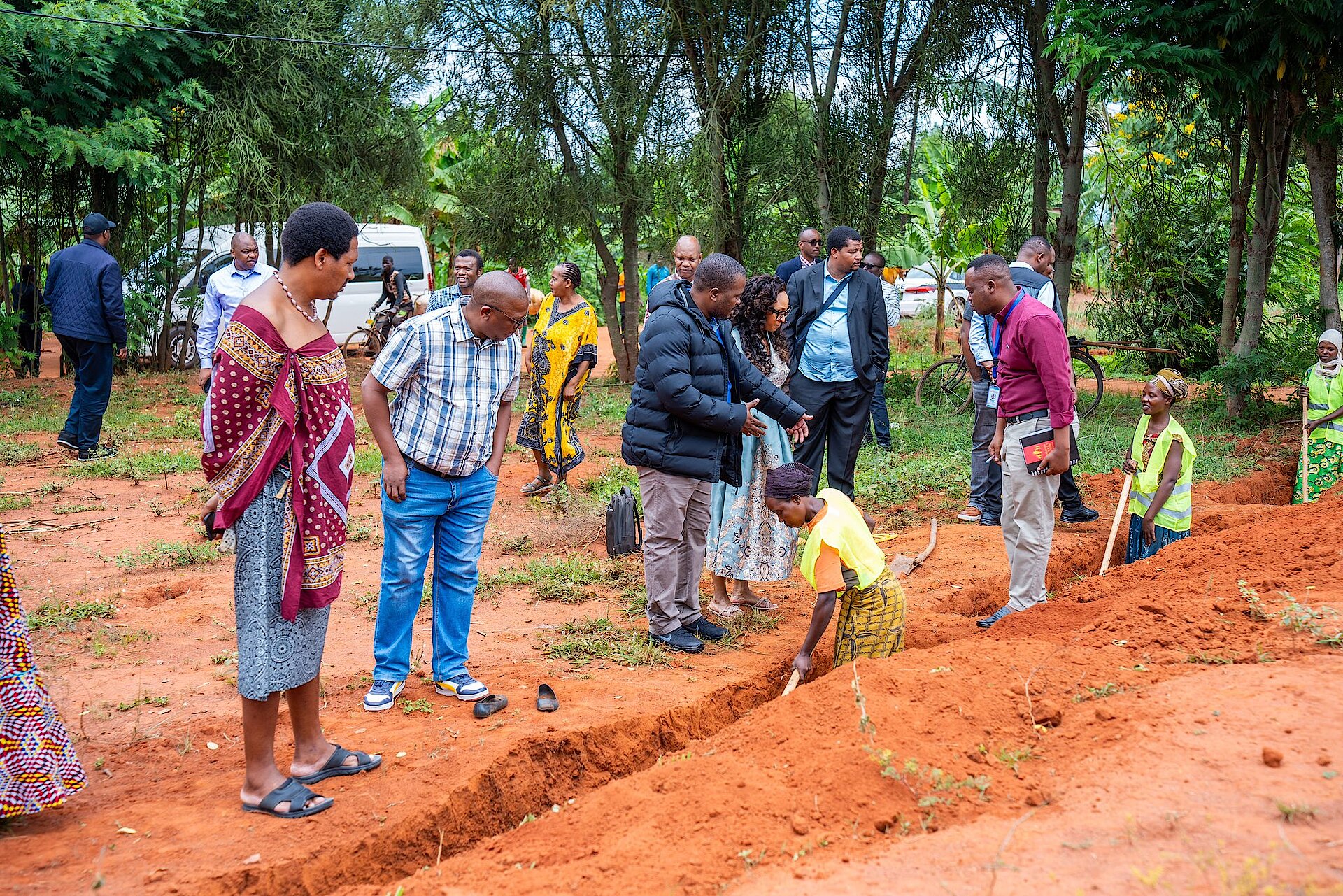 Abanya Eswatini basuye abaturage bakora ibikorwa byo gucukura amaterasi muri gahunda ya VUP, mu Kagari ka Kintambwe