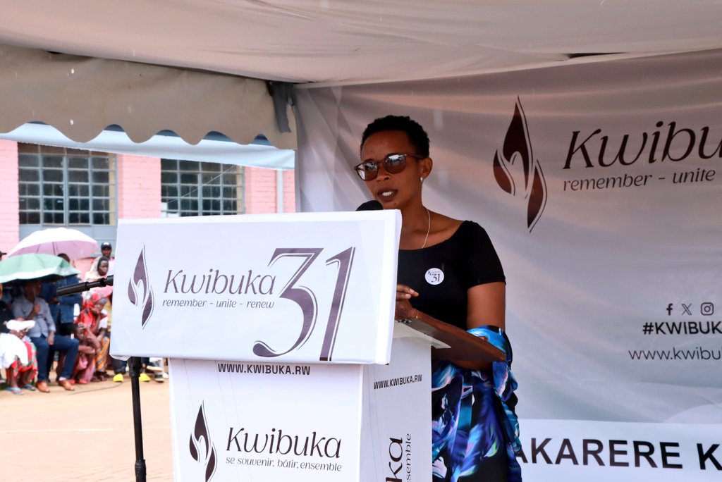 Ati: “Ku nshuro ya 31 Jenoside yakorewe Abatutsi ihagaritswe, hari byinshi byo kwishimira Imiyoborere myiza yatugejejeho. Turasabwa rero kubisigasira, tugakora cyane kugirango duhamye umuco w’Ubumwe bwacu. N’ubwo bigaragara ko ingenagbitekerezo ya jenoside igihemberwa, ntibiduce intege kuko nta na riwme ikibi gitsinda icyiza. Ufatanye, tuyirwanye, izatsindwa.”