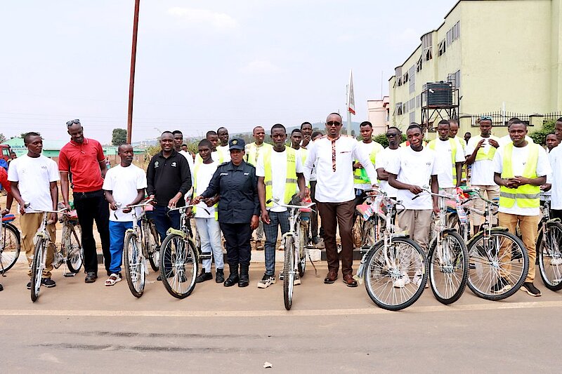 Ku bufatanye bwa Minisiteri y’Urubyiruko n’Iterambere ry’Ubuhanzi, Umuyobozi w’Akarere ka Bugesera, Mutabazi Richard, ari kumwe n’Umuyobozi ushinzwe guhuza ibikorwa bya Polisi n’abaturage mu Karere, SP Nyiraneza Marguerite, bashyikirije amagare 10 urubyiruko rwavuye Iwawa, rwibumbiye muri Koperative ABIZERWA ikora umwuga wo gutwara abagenzi ku magare rusabwa kuyakoresha neza akarugirira umumaro ndetse no kwirinda kongera kujya mu ngeso mbi zirimo ibiyobyabwenge n’ibindi.